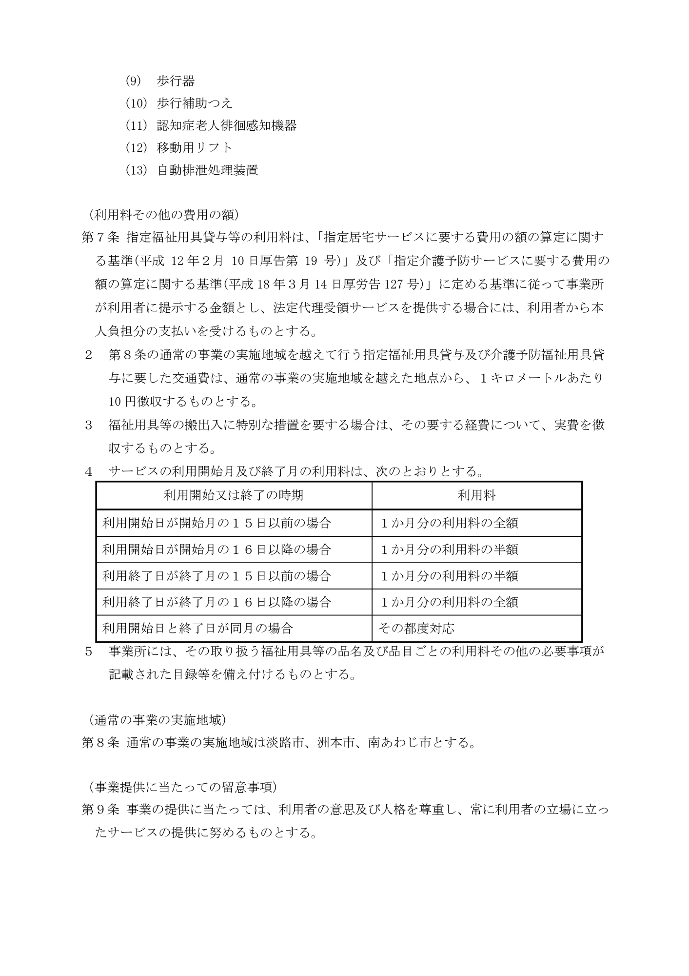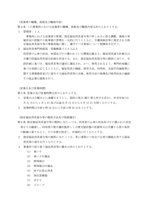 ・指定福祉用具貸与等の提供方法及び取扱種目